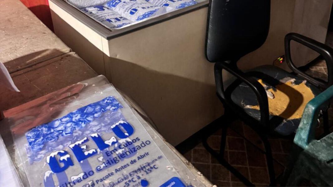 Durante a averiguação, os guardas entraram no local e constataram que o espaço funcionava como uma mini fábrica irregular de gelo. No interior do imóvel foram encontrados equipamentos utilizados na fabricação, grande quantidade de embalagens e uma máquina seladora usada para fechar os sacos de gelo.