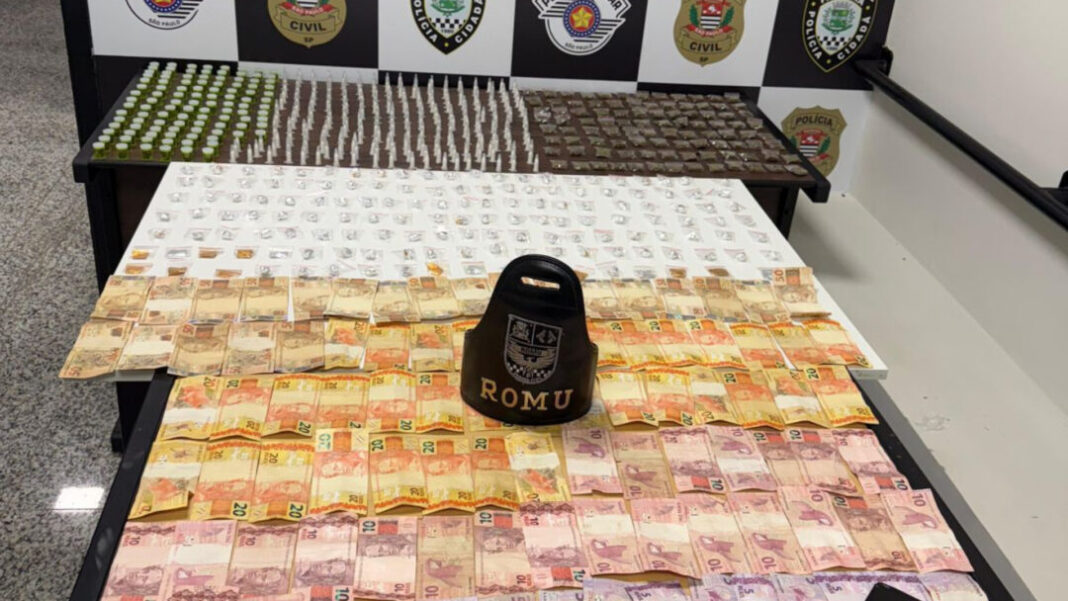 Durante a revista, os guardas encontraram R$ 2.200 em dinheiro e uma grande quantidade de drogas já fracionadas para venda, incluindo cocaína, buchas de maconha, porções de skank, pedras de crack e porções de haxixe.