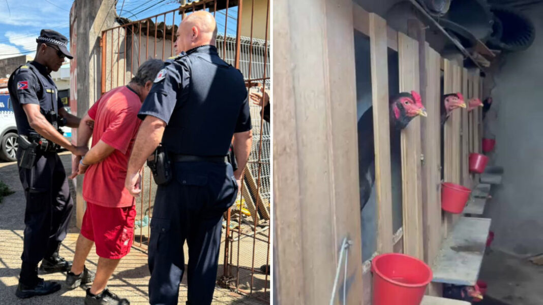 No interior do imóvel, os agentes localizaram 39 galos, mantidos em gaiolas de madeira e arame, além de algumas aves soltas. As estruturas apresentavam ventilação precária, cobertura baixa e espaço insuficiente, configurando situação de maus-tratos. Apesar de não terem sido encontrados instrumentos típicos utilizados em rinhas, como esporas artificiais, relatos de vizinhos apontaram que o morador costumava sair à noite transportando aves em caixas, o que levantou suspeitas sobre a prática ilegal.