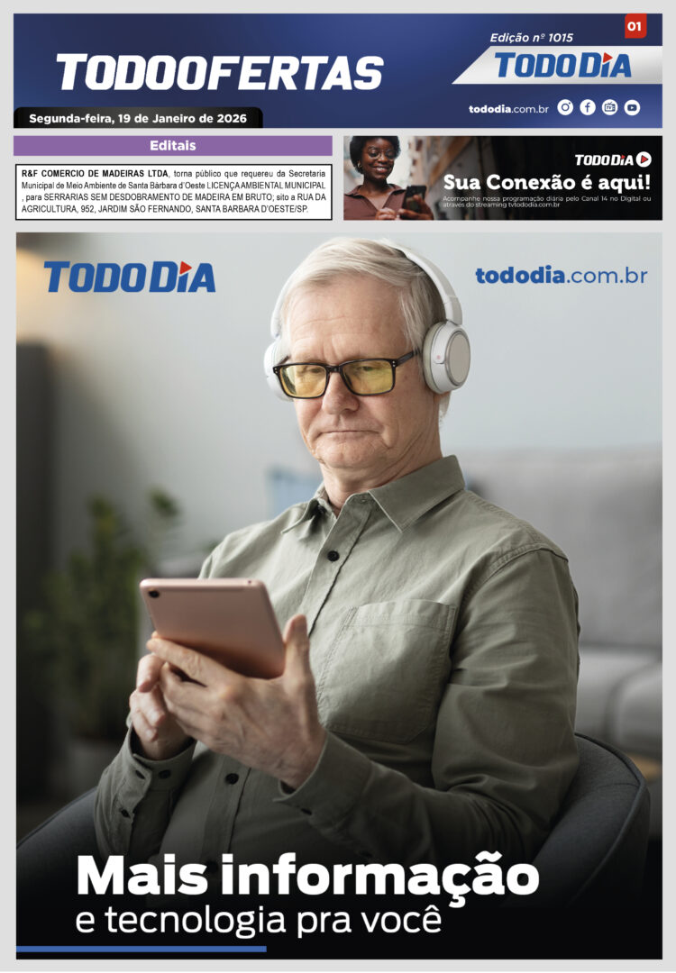 Todo Ofertas Todo Ofertas – Edição nº 1015 Por Publicidade Legal 19 de janeiro de 2026 16h07 FacebookTwitterLinkedinWhatsAppO emailCopy URL Veja Também Portal Jornal TODODIA – 02-04-26 – ED. 1242 Sem categoria Em busca do peixe: Mercadão de Campinas registra movimento intenso Polícia Mulher tem aliança roubada por homem armado em frente da própria casa em Hortolândia Portal Jornal TODODIA – 02-04-26 – ED. 1242 Sem categoria Em busca do peixe: Mercadão de Campinas registra movimento intenso