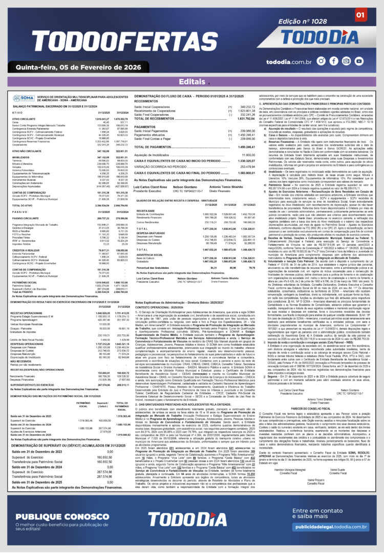 Todo Ofertas Todo Ofertas – Edição nº 1028 Por Publicidade Legal 5 de fevereiro de 2026 08h00 FacebookTwitterLinkedinWhatsAppO emailCopy URL Veja Também Cidades Câmara de Cosmópolis inicia 2026 com debates sobre orçamento e segurança Polícia Motorista é preso com quase 60 kg de cocaína escondidos em carreta na SP-304 TV TodoDia Começa hoje a ‘Novena de Nossa Senhora de Lourdes’; confira na TV TODODIA Cidades Câmara de Cosmópolis inicia 2026 com debates sobre orçamento e segurança Polícia Motorista é preso com quase 60 kg de cocaína escondidos em carreta na SP-304