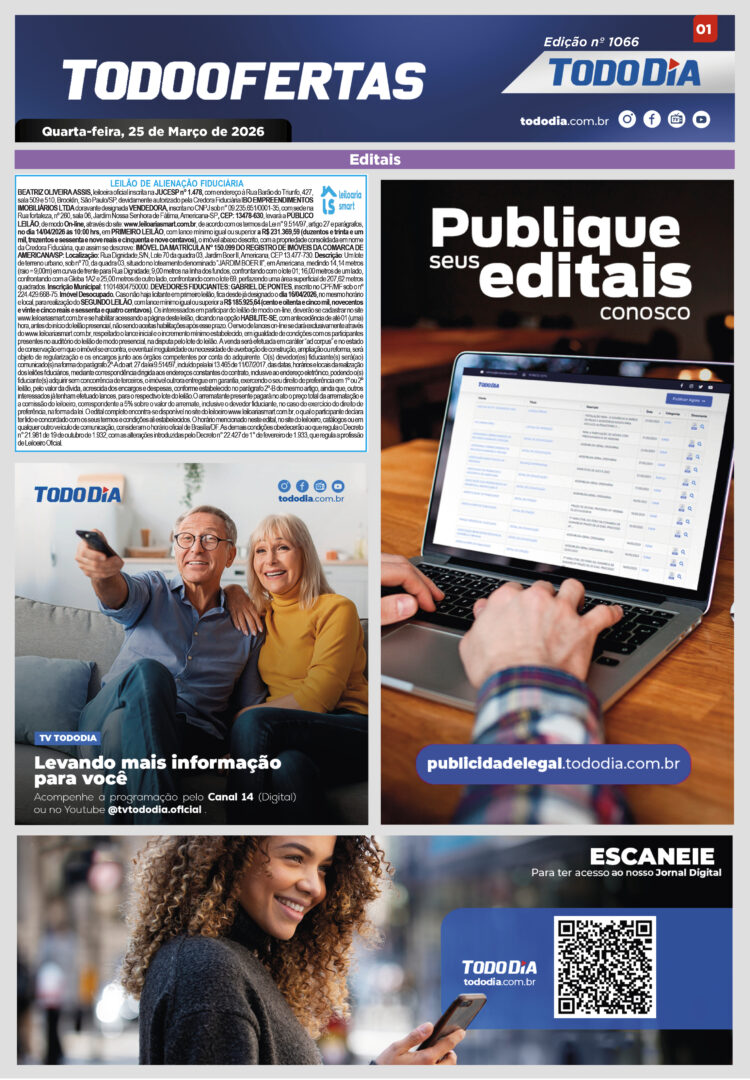 Todo Ofertas Todo Ofertas – Edição nº 1066 Por Publicidade Legal 25 de março de 2026 07h00 FacebookTwitterLinkedinWhatsAppO emailCopy URL Veja Também Polícia Dupla é presa por roubo à joalheria em Nova Odessa; rede foi assaltada quatro vezes em menos de um ano Cosmópolis Alunos da Escola Estadual Alberto Fierz agem contra descarte irregular em Cosmópolis Hortolândia Prazo de adesão ao Refis 2025 de Hortolândia termina em 31 de março Polícia Dupla é presa por roubo à joalheria em Nova Odessa; rede foi assaltada quatro vezes em menos de um ano Cosmópolis Alunos da Escola Estadual Alberto Fierz agem contra descarte irregular em Cosmópolis