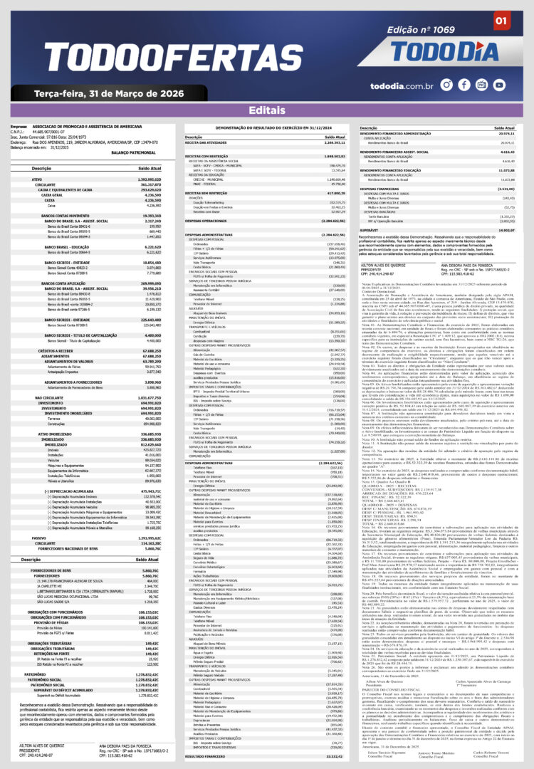 Todo Ofertas Todo Ofertas – Edição nº 1069 Por Publicidade Legal 31 de março de 2026 08h00 FacebookTwitterLinkedinWhatsAppO emailCopy URL Veja Também TV TodoDia Acompanhe o oitavo dia da ‘Novena da Santa Cruz’ na TV TODODIA Americana Descarte de graxa em afluente de córrego perto de multinacional gera denúncia em Americana; Cetesb prevê sanção Cidades Prefeito e vereador trocam acusações e ameaças durante sessão em Nova Odessa TV TodoDia Acompanhe o oitavo dia da ‘Novena da Santa Cruz’ na TV TODODIA Americana Descarte de graxa em afluente de córrego perto de multinacional gera denúncia em Americana; Cetesb prevê sanção