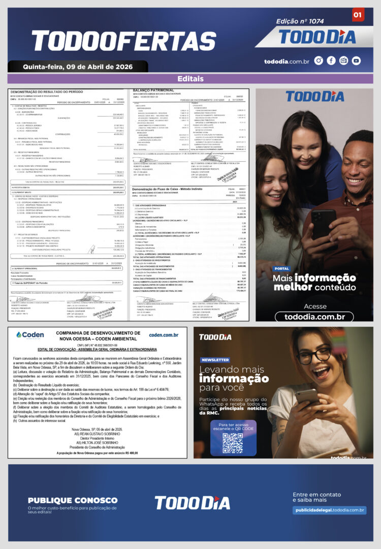 Todo Ofertas Todo Ofertas – Edição nº 1074 Por Publicidade Legal 9 de abril de 2026 08h37 FacebookTwitterLinkedinWhatsAppO emailCopy URL Veja Também Sem categoria Jornal TODODIA – 20-04-26 – ED. 1260 Polícia Equipe do canil do Baep prende homem por tráfico de drogas na Vila Valle, em Sumaré RMC - Região Metropolitana de Campinas Rodovias da região devem ter movimento intenso no retorno do feriadão Sem categoria Jornal TODODIA – 20-04-26 – ED. 1260 Polícia Equipe do canil do Baep prende homem por tráfico de drogas na Vila Valle, em Sumaré