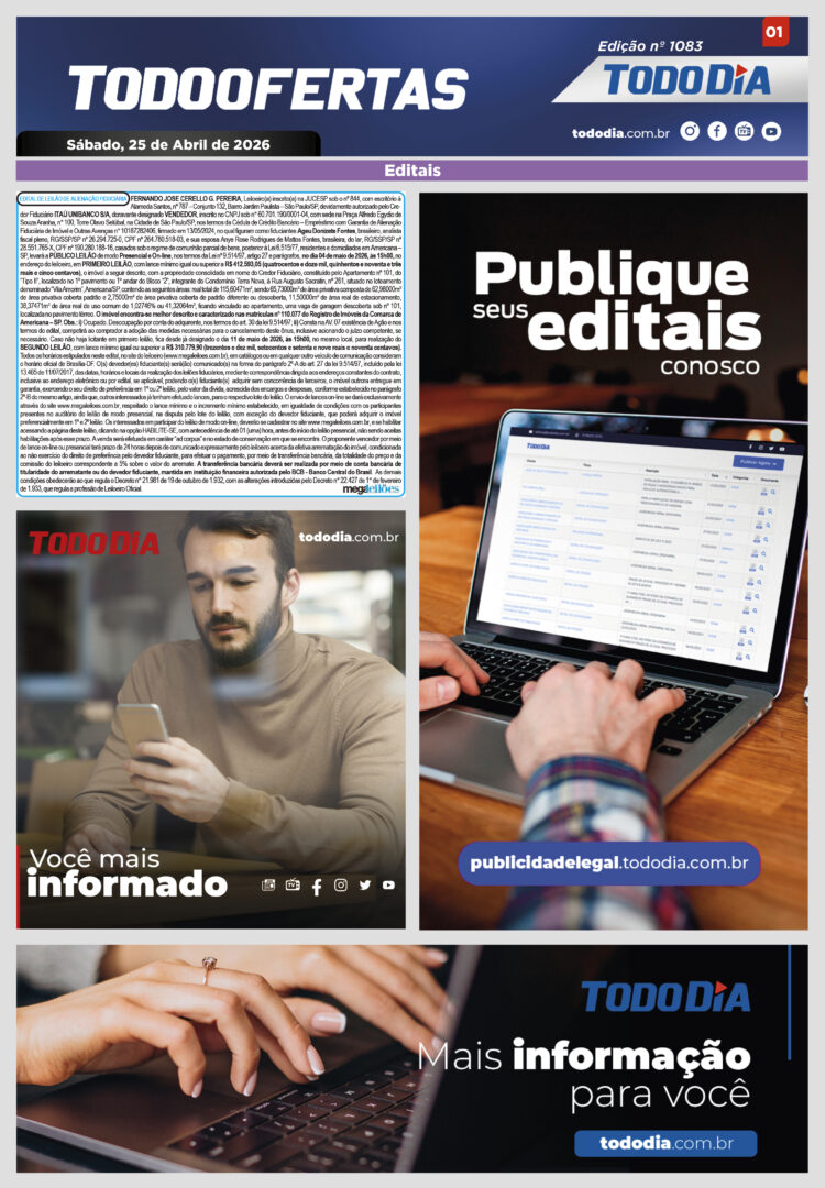 Todo Ofertas Todo Ofertas – Edição nº 1083 Por Publicidade Legal 25 de abril de 2026 07h12 FacebookTwitterLinkedinWhatsAppO emailCopy URL Veja Também Cultura Vencedora do Prêmio Jabuti, Socorro Acioli participa da Semana Senac de Leitura em Americana Cultura Espetáculo imersivo transforma piano em experiência sensorial inédita em Campinas TV TodoDia A ‘Novena de Santo Expedito’ termina hoje; confira na TV TODODIA Cultura Vencedora do Prêmio Jabuti, Socorro Acioli participa da Semana Senac de Leitura em Americana Cultura Espetáculo imersivo transforma piano em experiência sensorial inédita em Campinas