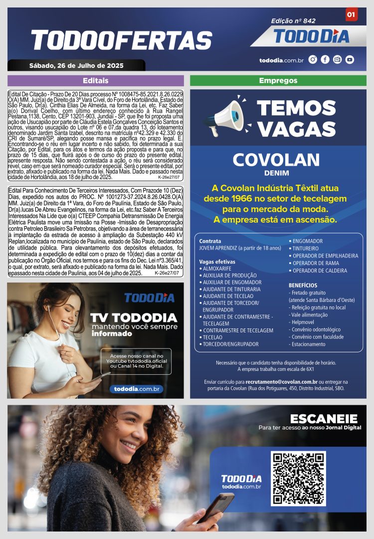 Todo Ofertas Todo Ofertas – Edição nº 842 Por Publicidade Legal 26 de julho de 2025 12h35 FacebookTwitterLinkedinWhatsAppO emailCopy URL Veja Também Portal Jornal TODODIA – 05-04-26 – ED. 1245 Cidades Masculinidade tóxica invade as redes sociais e acende alerta de autoridades Polícia Costureira se esconde em vizinha para escapar de agressões do marido em Santa Bárbara Portal Jornal TODODIA – 05-04-26 – ED. 1245 Cidades Masculinidade tóxica invade as redes sociais e acende alerta de autoridades