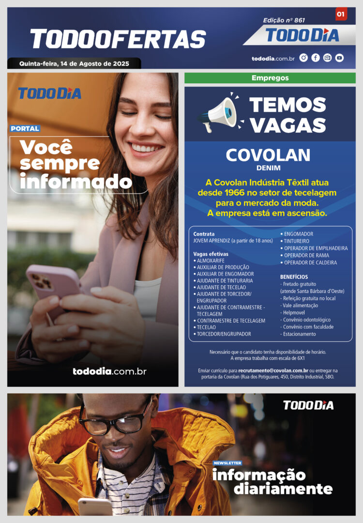 Todo Ofertas Todo Ofertas – Edição nº 861 Por Sabrina Furlan 14 de agosto de 2025 07h30 FacebookTwitterLinkedinWhatsAppO emailCopy URL Veja Também Polícia Polícia Militar Ambiental flagra criação de animais e desmatamento em área verde protegida em Sumaré Americana Soma forma mais uma turma e chega a 15 mil jovens capacitados para o mercado de trabalho TV TodoDia Segundo dia do ‘Tríduo de Cura e Libertação pelo Sangue de Jesus’: assista na TV TODODIA Polícia Polícia Militar Ambiental flagra criação de animais e desmatamento em área verde protegida em Sumaré Americana Soma forma mais uma turma e chega a 15 mil jovens capacitados para o mercado de trabalho