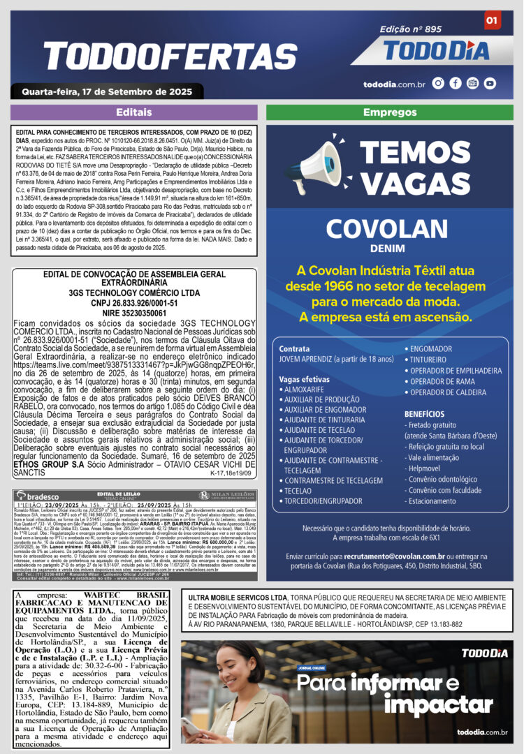 Todo Ofertas Todo Ofertas – Edição nº 895 Por Publicidade Legal 17 de setembro de 2025 07h40 FacebookTwitterLinkedinWhatsAppO emailCopy URL Veja Também TV TodoDia Segundo dia do ‘Tríduo de Cura e Libertação pelo Sangue de Jesus’: assista na TV TODODIA Paulínia Maratoninha Kids 2026 abre temporada em Paulínia neste sábado (4) Portal Jornal TODODIA – 02-04-26 – ED. 1242 TV TodoDia Segundo dia do ‘Tríduo de Cura e Libertação pelo Sangue de Jesus’: assista na TV TODODIA Paulínia Maratoninha Kids 2026 abre temporada em Paulínia neste sábado (4)