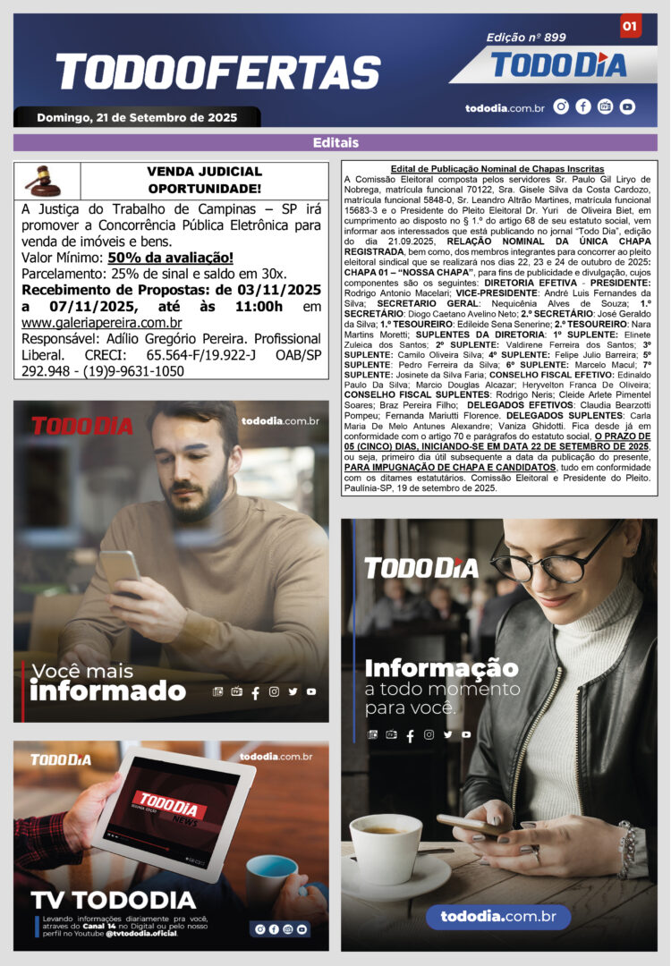 Todo Ofertas Todo Ofertas – Edição nº 899 Por Publicidade Legal 21 de setembro de 2025 07h00 FacebookTwitterLinkedinWhatsAppO emailCopy URL Veja Também Portal Jornal TODODIA – 29-10-25 – ED. 1089 Cidades Vereador Léo do LM (PSB) deixa a Câmara de Hortolândia após cassação; Nei Prazeres (PP) assume a vaga Cidades Prefeito homenageia comitiva de multinacional coreana e discute novos investimentos em Limeira Portal Jornal TODODIA – 29-10-25 – ED. 1089 Cidades Vereador Léo do LM (PSB) deixa a Câmara de Hortolândia após cassação; Nei Prazeres (PP) assume a vaga