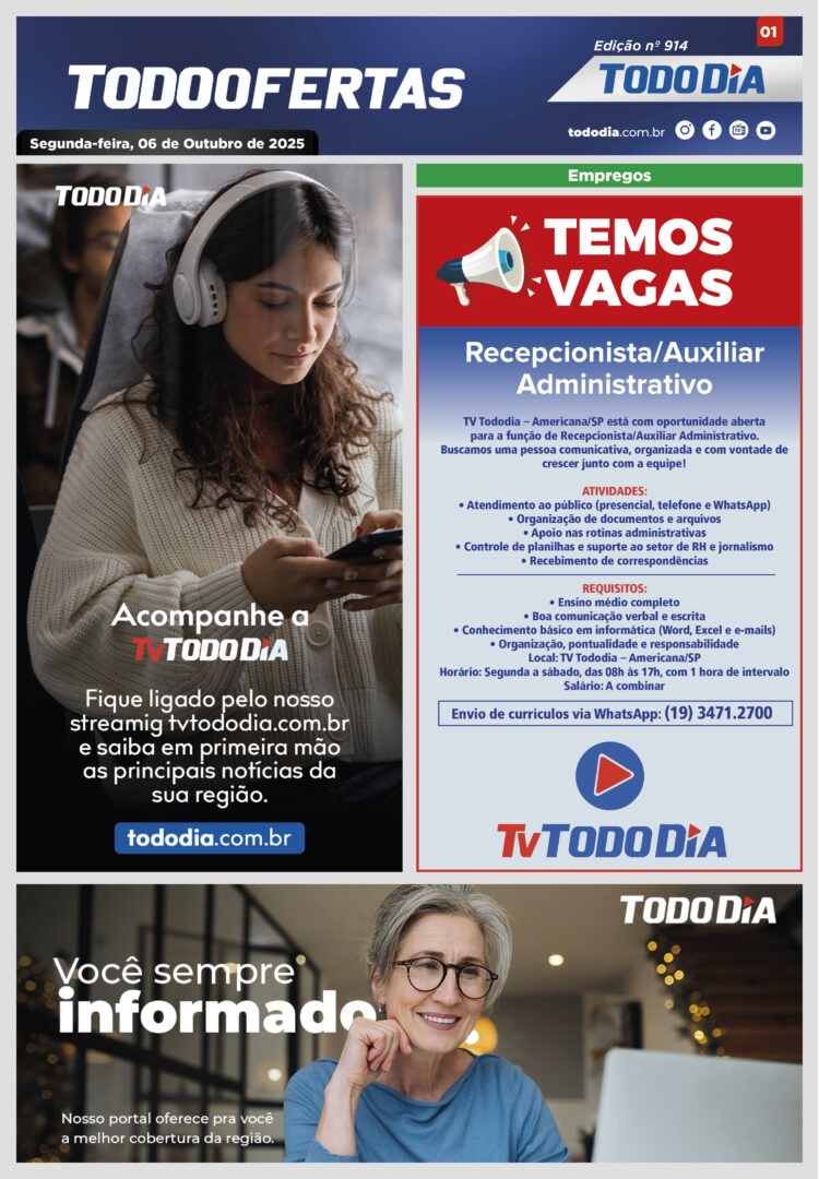 Todo Ofertas Todo Ofertas – Edição nº 914 Por Publicidade Legal 6 de outubro de 2025 07h13 FacebookTwitterLinkedinWhatsAppO emailCopy URL Veja Também Portal Jornal TODODIA – 29-10-25 – ED. 1089 Cidades Vereador Léo do LM (PSB) deixa a Câmara de Hortolândia após cassação; Nei Prazeres (PP) assume a vaga Cidades Prefeito homenageia comitiva de multinacional coreana e discute novos investimentos em Limeira Portal Jornal TODODIA – 29-10-25 – ED. 1089 Cidades Vereador Léo do LM (PSB) deixa a Câmara de Hortolândia após cassação; Nei Prazeres (PP) assume a vaga