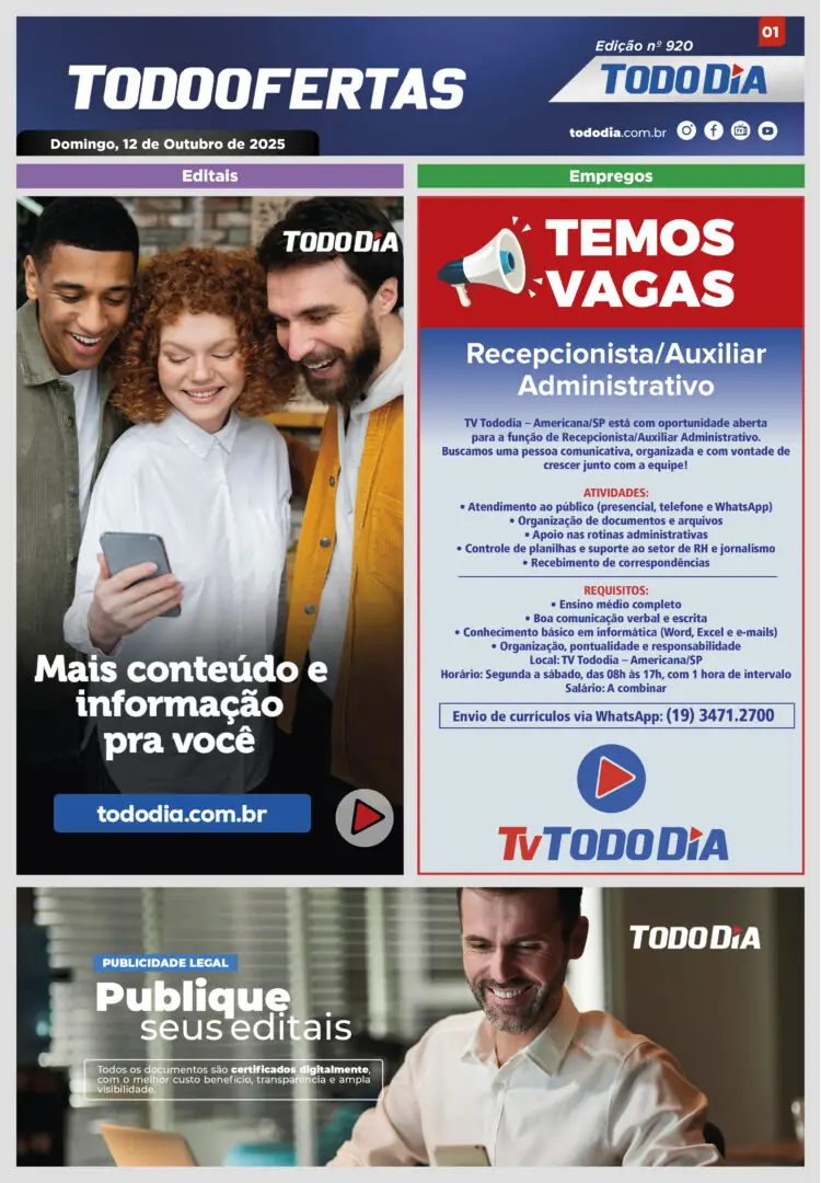 Todo Ofertas Todo Ofertas – Edição nº 921 Por Publicidade Legal 13 de outubro de 2025 07h00 FacebookTwitterLinkedinWhatsAppO emailCopy URL Veja Também TV TodoDia Começa hoje a Novena em honra a ‘Santa Teresinha do Menino Jesus’ com Padre Reginaldo Manzotti , às 10h Campinas Motociclista morre após colisão e atropelamento na Rodovia dos Bandeirantes em Campinas Portal Jornal TODODIA – 12-10-25 – ED. 1074 TV TodoDia Começa hoje a Novena em honra a ‘Santa Teresinha do Menino Jesus’ com Padre Reginaldo Manzotti , às 10h Campinas Motociclista morre após colisão e atropelamento na Rodovia dos Bandeirantes em Campinas
