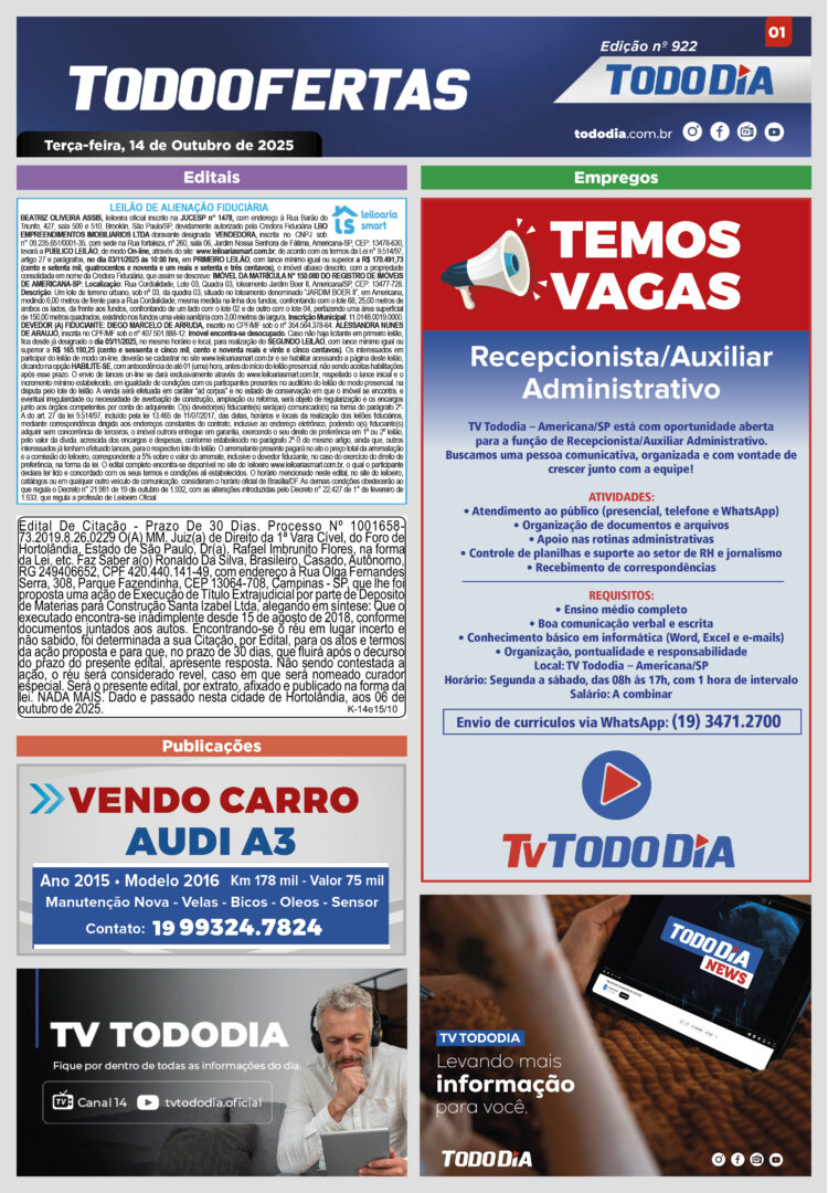 Todo Ofertas Todo Ofertas – Edição nº 922 Por Publicidade Legal 14 de outubro de 2025 07h15 FacebookTwitterLinkedinWhatsAppO emailCopy URL Veja Também TV TodoDia Acompanhe o 3º dia da ‘Novena de Natal’ com Padre Manzotti nesta quarta-feira, às 10h Americana Trem Iluminado encanta moradores e leva clima de Natal à linha férrea de Americana Polícia Duas toneladas de drogas são incineradas em ação da Polícia Civil TV TodoDia Acompanhe o 3º dia da ‘Novena de Natal’ com Padre Manzotti nesta quarta-feira, às 10h Americana Trem Iluminado encanta moradores e leva clima de Natal à linha férrea de Americana