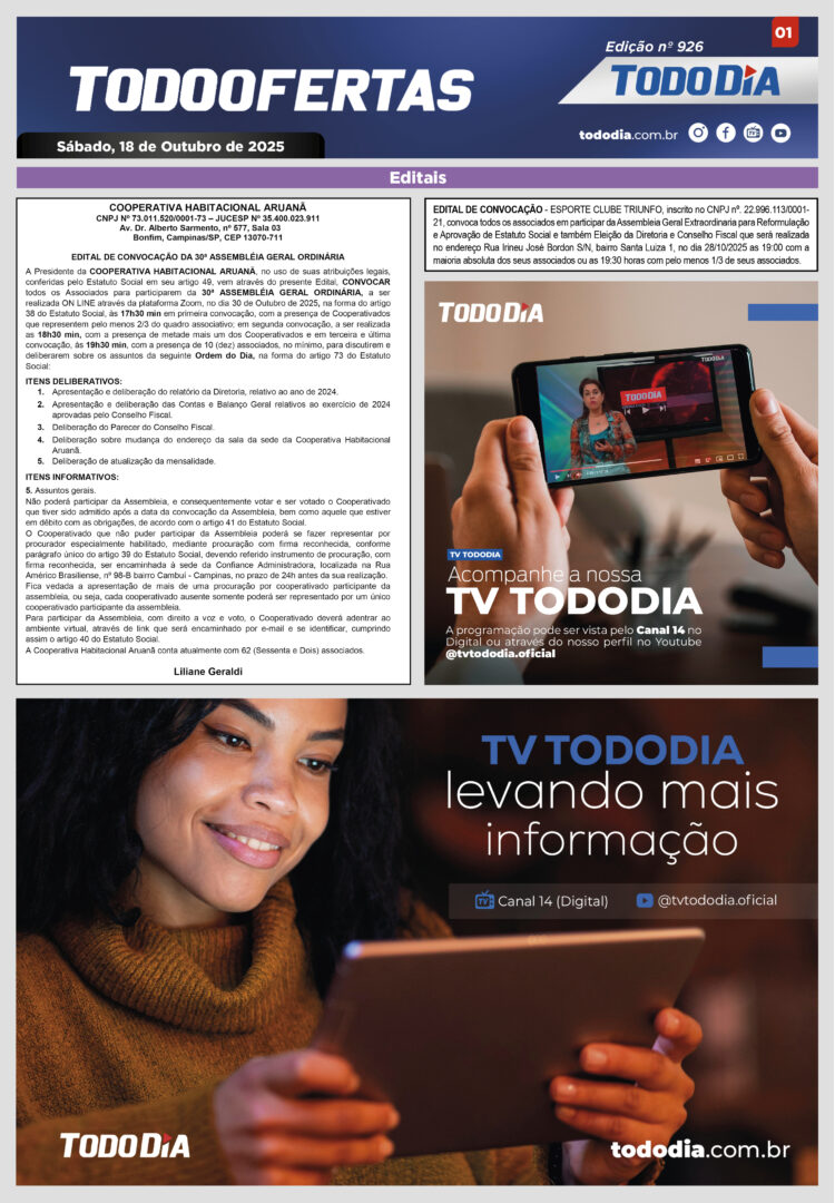 Todo Ofertas Todo Ofertas – Edição nº 926 Por Publicidade Legal 18 de outubro de 2025 07h00 FacebookTwitterLinkedinWhatsAppO emailCopy URL Veja Também Americana Procon de Americana muda de endereço e atende na Rua Sete de Setembro a partir de segunda-feira (3) Campinas Cachorrinha fica ferida após ser atacada por dois pitbulls em Campinas Cidades Motociclista atingido por caminhonete em Limeira relata momentos do acidente Americana Procon de Americana muda de endereço e atende na Rua Sete de Setembro a partir de segunda-feira (3) Campinas Cachorrinha fica ferida após ser atacada por dois pitbulls em Campinas
