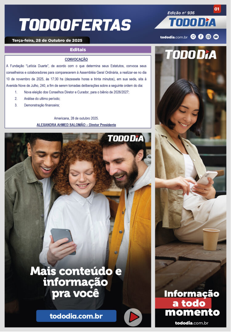 Todo Ofertas Todo Ofertas – Edição nº 936 Por Publicidade Legal 28 de outubro de 2025 13h25 FacebookTwitterLinkedinWhatsAppO emailCopy URL Veja Também Portal Jornal TODODIA – 28-10-25 – ED. 1088 Cidades Déficit comercial da região de Campinas ultrapassa US$ 1,1 bi em meio a alta das importações e temor por crise hídrica Polícia Sumaré e Hortolândia: PM prende quatro pessoas e apreende 12 kg de drogas em duas ocorrências Portal Jornal TODODIA – 28-10-25 – ED. 1088 Cidades Déficit comercial da região de Campinas ultrapassa US$ 1,1 bi em meio a alta das importações e temor por crise hídrica