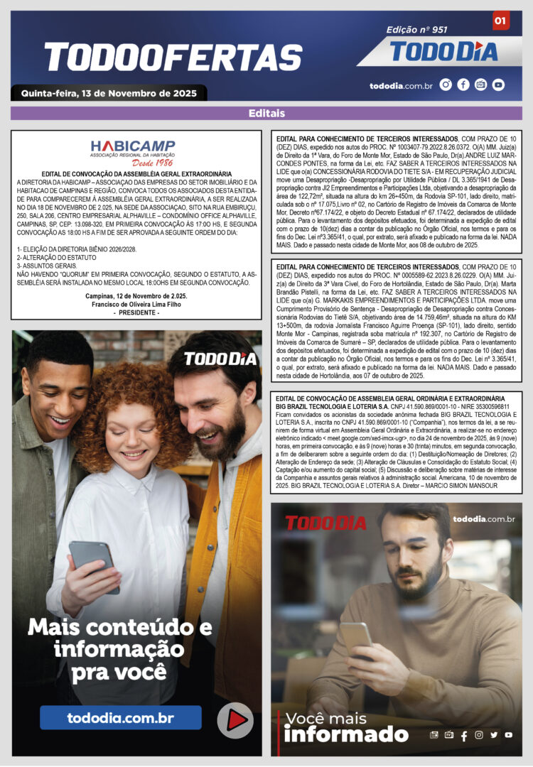 Todo Ofertas Todo Ofertas – Edição nº 951 Por Publicidade Legal 13 de novembro de 2025 07h30 FacebookTwitterLinkedinWhatsAppO emailCopy URL Veja Também Portal Jornal TODODIA – 02-04-26 – ED. 1242 Sem categoria Em busca do peixe: Mercadão de Campinas registra movimento intenso Polícia Mulher tem aliança roubada por homem armado em frente da própria casa em Hortolândia Portal Jornal TODODIA – 02-04-26 – ED. 1242 Sem categoria Em busca do peixe: Mercadão de Campinas registra movimento intenso