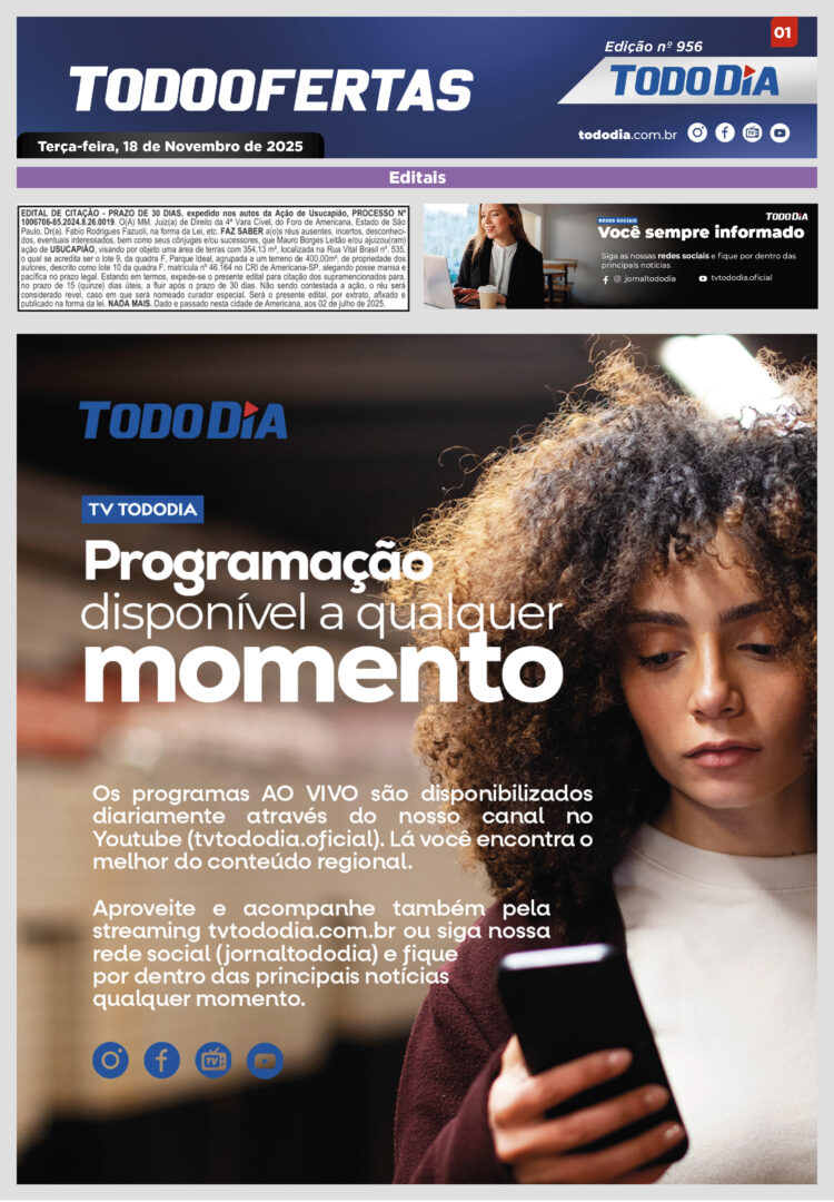 Todo Ofertas Todo Ofertas – Edição nº 956 Por Publicidade Legal 18 de novembro de 2025 07h44 FacebookTwitterLinkedinWhatsAppO emailCopy URL Veja Também Portal Jornal TODODIA – 02-04-26 – ED. 1242 Sem categoria Em busca do peixe: Mercadão de Campinas registra movimento intenso Polícia Mulher tem aliança roubada por homem armado em frente da própria casa em Hortolândia Portal Jornal TODODIA – 02-04-26 – ED. 1242 Sem categoria Em busca do peixe: Mercadão de Campinas registra movimento intenso