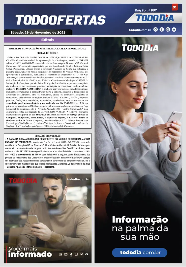 Todo Ofertas Todo Ofertas – Edição nº 967 Por Publicidade Legal 29 de novembro de 2025 07h13 FacebookTwitterLinkedinWhatsAppO emailCopy URL Veja Também Cidades Feira de Adoção Responsável de Animais acontece na região central de Sumaré Cidades Saiba quem era o médico da região que morreu em Lima, onde acompanharia a final da Copa Libertadores Portal Jornal TODODIA – 28-11-25 – ED. 1118 Cidades Feira de Adoção Responsável de Animais acontece na região central de Sumaré Cidades Saiba quem era o médico da região que morreu em Lima, onde acompanharia a final da Copa Libertadores