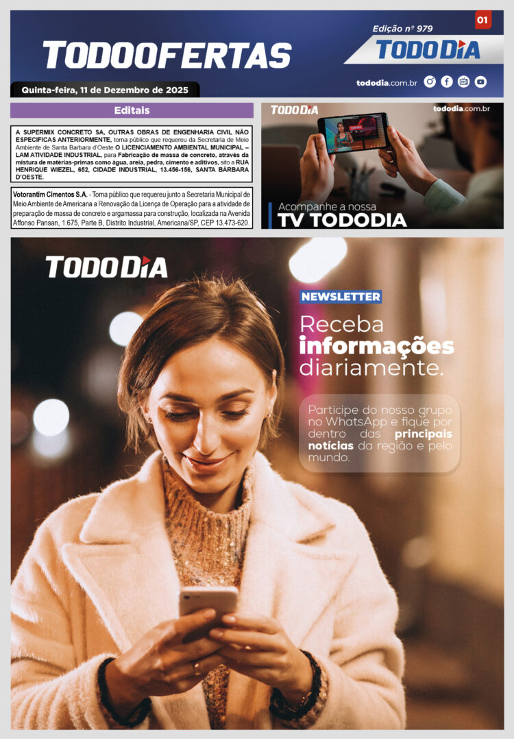 Todo Ofertas Todo Ofertas – Edição nº 979 Por Publicidade Legal 11 de dezembro de 2025 07h00 FacebookTwitterLinkedinWhatsAppO emailCopy URL Veja Também Painel Regional Internet em Americana: estabilidade, cobertura por bairro e o novo padrão de qualidade em 2026 Americana Americana propõe municipalização do Procon em visita de Celso Russomanno Polícia Desvio milionário de combustível é descoberto na região; sete são presos Painel Regional Internet em Americana: estabilidade, cobertura por bairro e o novo padrão de qualidade em 2026 Americana Americana propõe municipalização do Procon em visita de Celso Russomanno